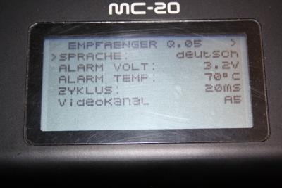 10. Ist alles richtig gelaufen, kannst du nun im Telemetriemenü deines Senders unter "Einstellen / Anzeigen" alle schon vorhandenen und neue Möglichkeiten (siehe oben) deines Alphas 110 einstellen.