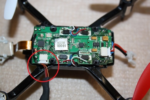 3. Von oben in Flugrichtung betrachtet, befindet sich auf der vorderen linken Seite der Anschluss für das Updatekabel.