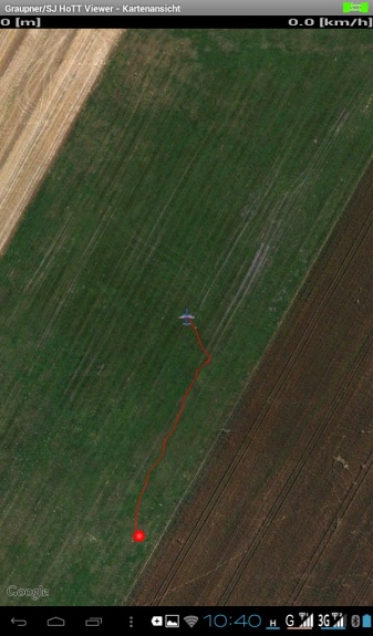 Vorteil hierbei die Apps funktionieren auch ohne das ein Log auf der SD-Karte läuft (sollte man aber nicht unbedingt machen). Nach Ausfall der Stromversorgung bzw. Rückkanal des RX bleiben die Daten innerhalb der App erhalten bis man diese schließt. Bei Verwendung der App Graupner HoTT Viewer ist die Modellsuche nach dem Richtungspfeil möglich. Das ist vor allem für diejenigen interessant die keinen üppigen Datentarif haben bzw. in Gebieten mit schlechtem Breitbandverbindungen. Auf Kartenansicht kann man alternativ trotzdem umschalten. Die App Graupner HoTT Meter Viewer benutzt ausschließlich Karten für die Flugroute auch hier ist eine Internetverbindung notwendig. Zur Not besteht die Möglichkeit von bekannten Gebieten die Karte vorab für die Offline Benutzung in der GoogleMaps App zu speichern.